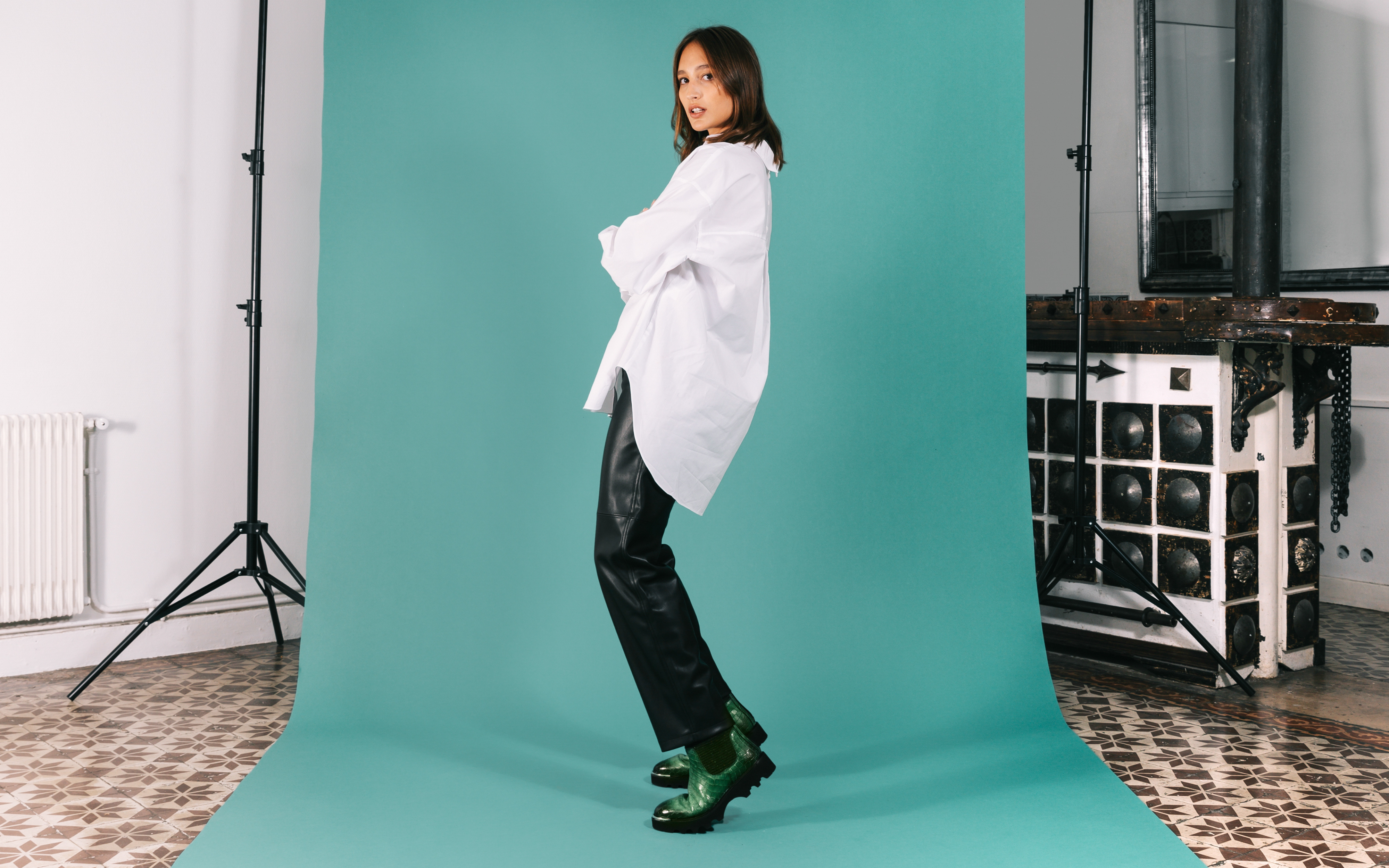 Bei Kleidern solltest du fließende oder drapierte Modelle bevorzugen. Wer sich in Hosen allerdings wohler fühlt, kann die Kombination aus Strumpfstiefelette und gerade geschnittener Lederhose wagen. Als Oberteil empfehlen wir ein weißes Baumwollhemd - ein schicker und zeitloser Klassiker.