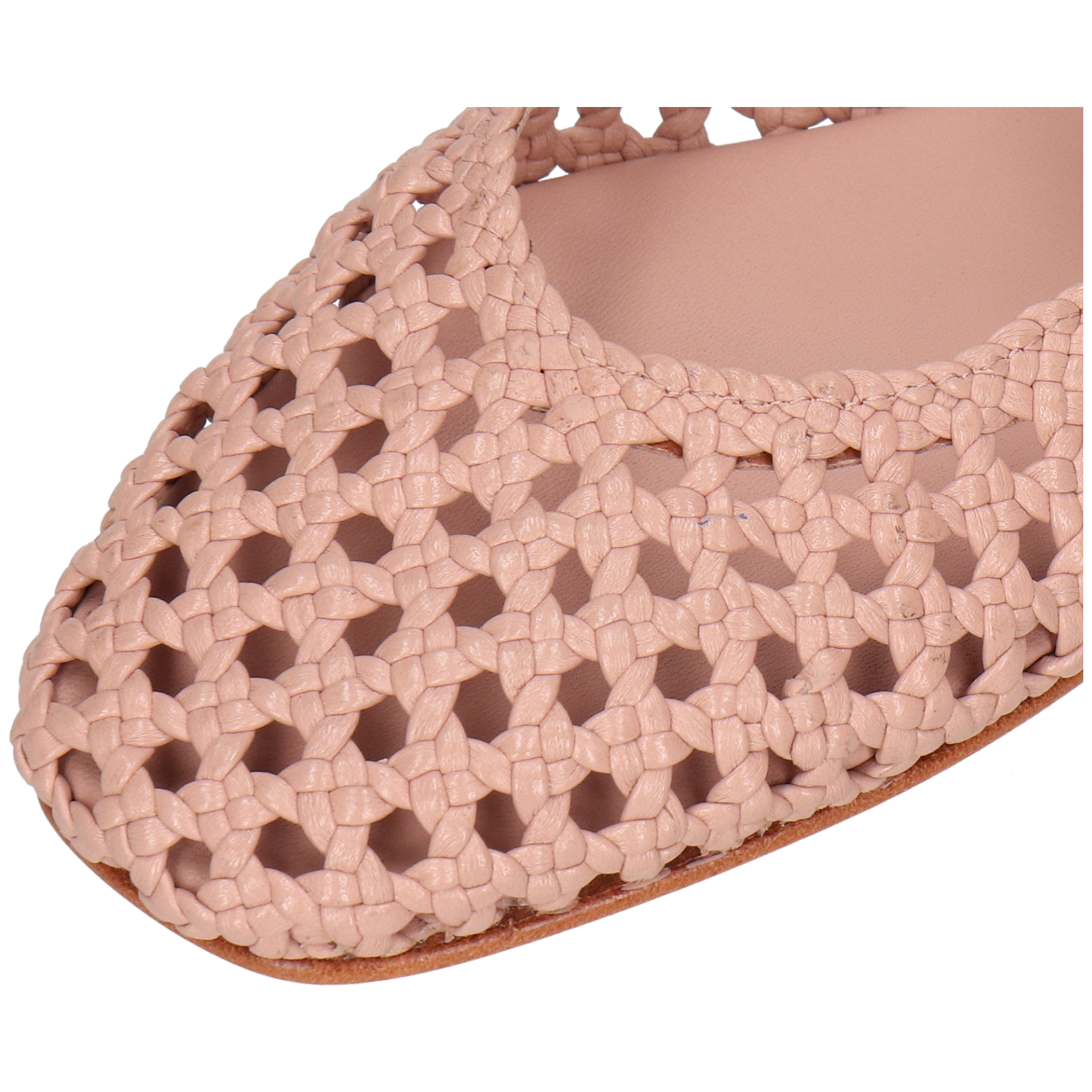 Geflochtenes Leder: Bürste vorsichtig, um Staub und Schmutz aus den Flechtungen zu entfernen. Wische bei Bedarf leicht mit einem feuchten Tuch. Trage eine kleine Menge Pflegemilch auf das Leder auf (überschüssige Creme aus den Zwischenräumen entfernen), lass sie einziehen und poliere dann leicht für einen dezenten Glanz. Vermeide Schuhcreme in den Flechtungen, da sie Oberflächen glätten und Flecken verursachen kann. Benutze Schuhspanner und lagere die Schuhe trocken; schütze sie vor Nässe, schweren Verschmutzungen und alkoholhaltigen Sprays.